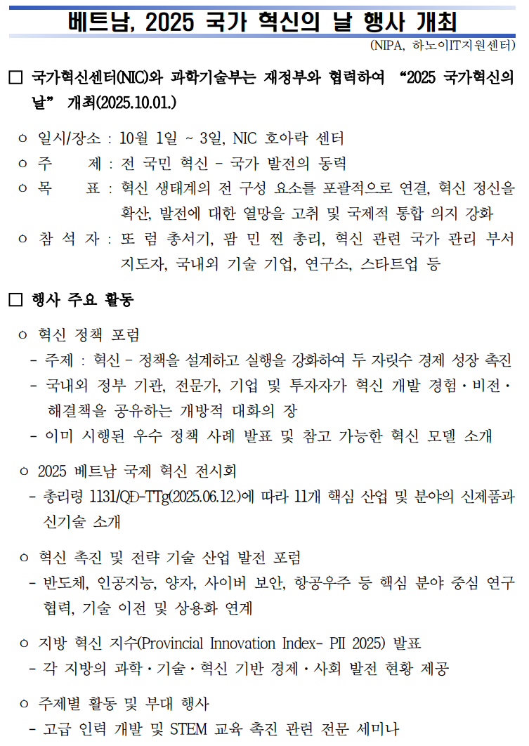베트남, 2025 국가 혁신의 날 행사 개최 (2025.10.14)