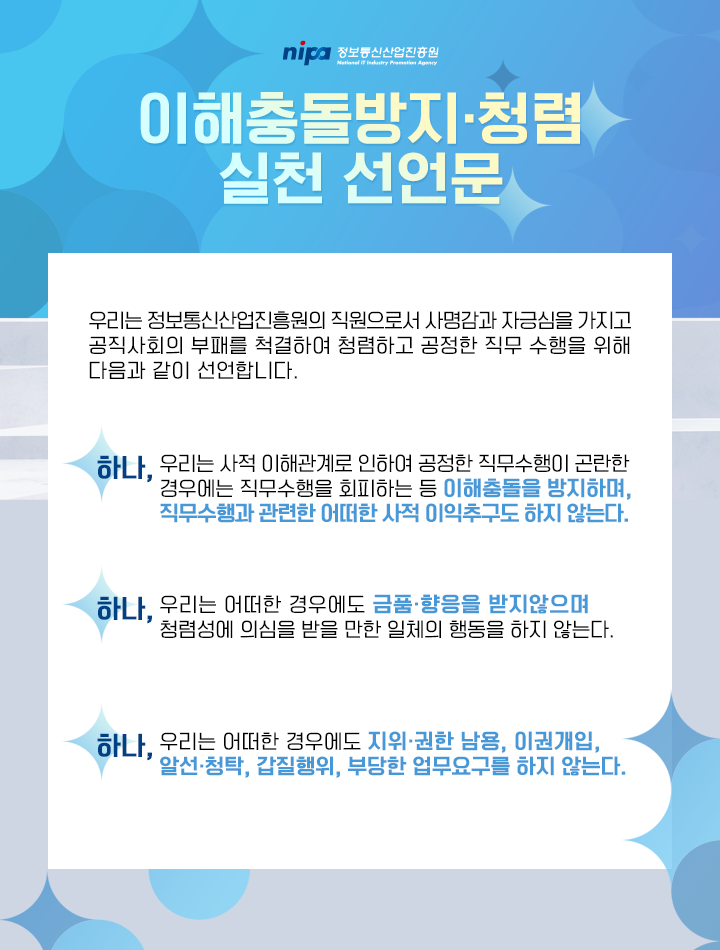 정보통신산업진흥원(NIPA)에서 제작한 청렴윤리 교육 영상을 아래의 링크 또는 붙임파일을 통해 시청해주시기 바랍니다.(약 4분 분량)