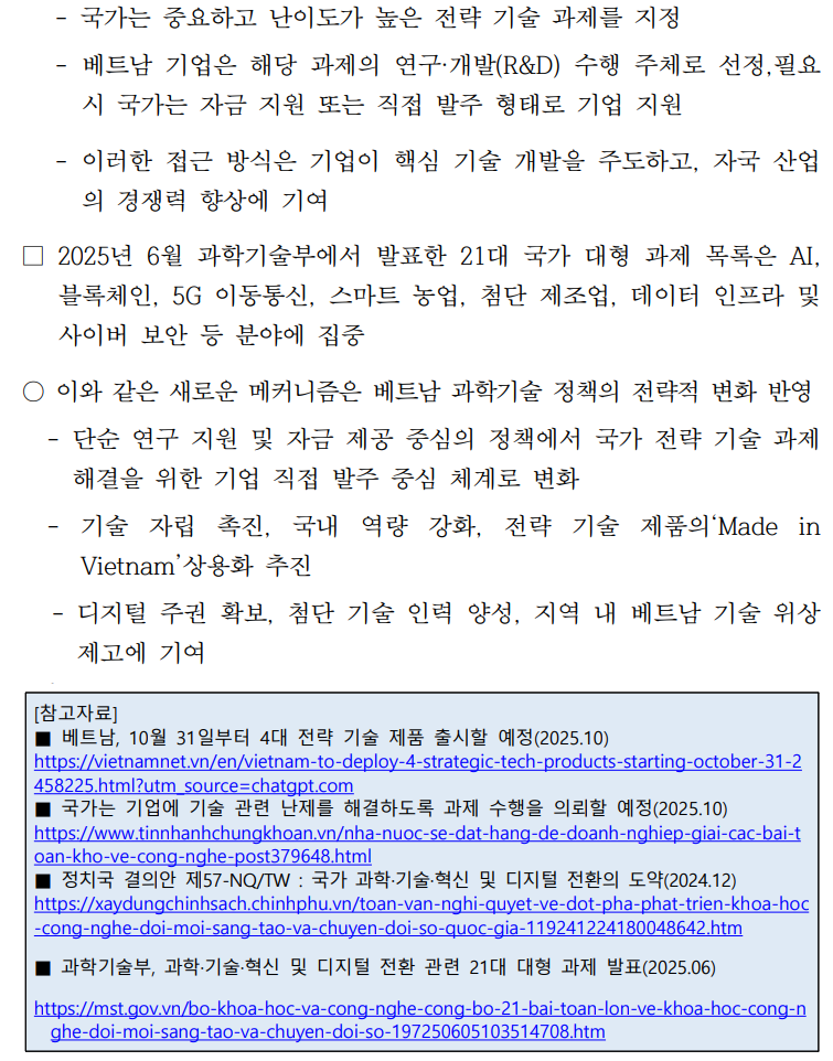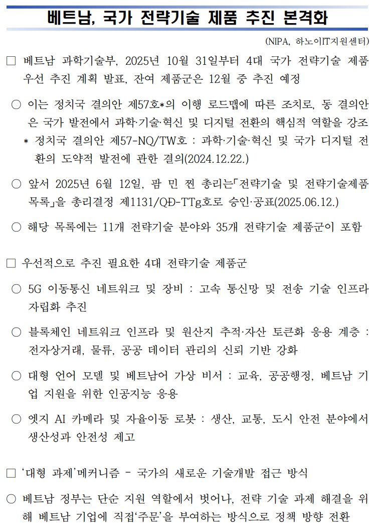 베트남, 국가 전략기술 제품 추진 본격화 (2025.11.13)